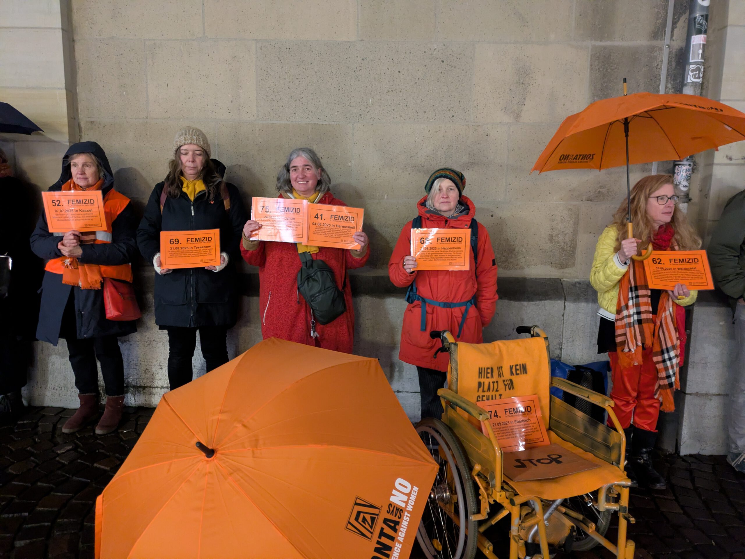 Die Gewalt gegen Frauen und Mädchen ist eine der am häufigsten verbreiteten Menschenrechtsverletzungen sowohl weltweit als auch in Deutschland. Fast jeden Tag findet in Deutschland ein Femizid statt. Daher haben wir auch 2025 zusammen mit vielen anderen Aktiven in Aachen ein Zeichen gegen Gewalt an Frauen gesetzt.