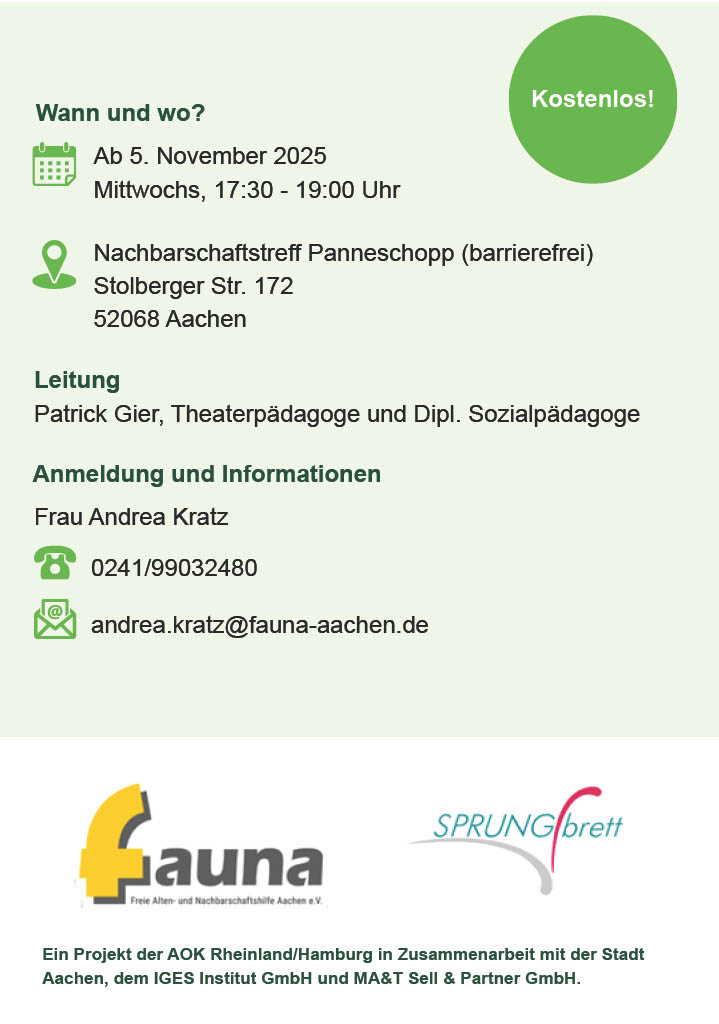 Bühne der GenerationenVon Irene@Fauna / 15. Oktober 2025 Am 5. November startet ein tolles, neues Kooperationsprojekt – einfach melden und mitspielen!